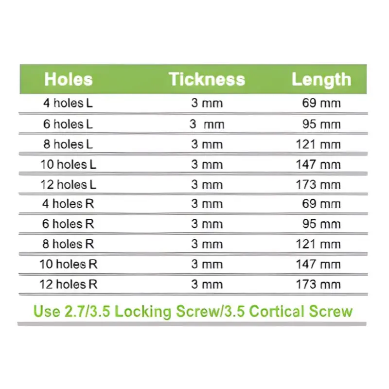 - Tornillos de Bloqueo: 2.7 mm / 3.5 mm