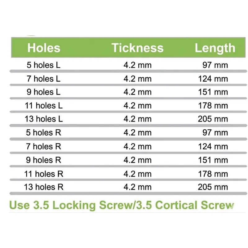 • Agujeros Combinados: Presenta orificios que permiten tanto la compresión como el bloqueo según la necesidad quirúrgica.