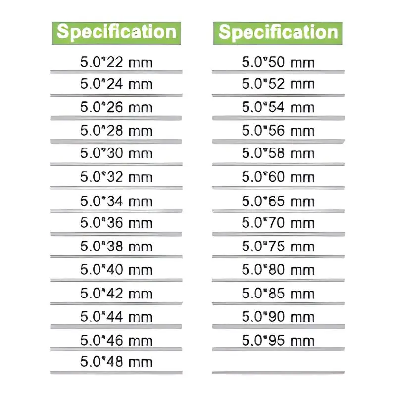 - Rango Extenso: Disponible en longitudes desde 22 mm hasta 95 mm para adaptarse a la anatomía femoral o tibial.